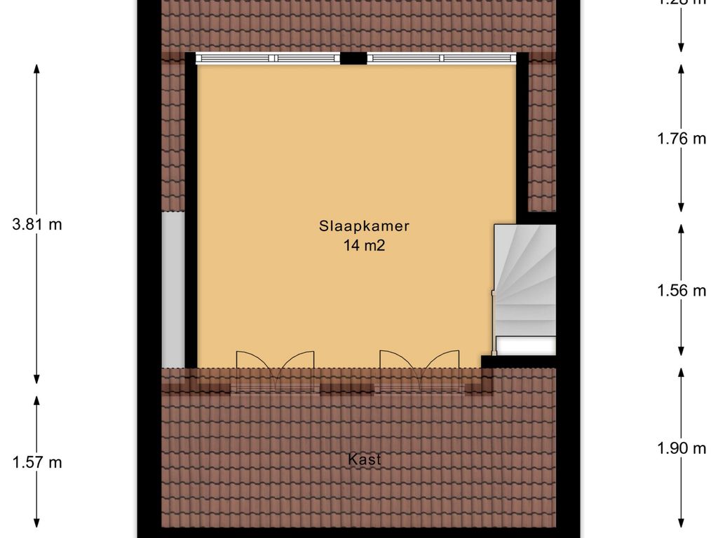 Slaapkamer (3) ca. 3.81 x 3.80 m.