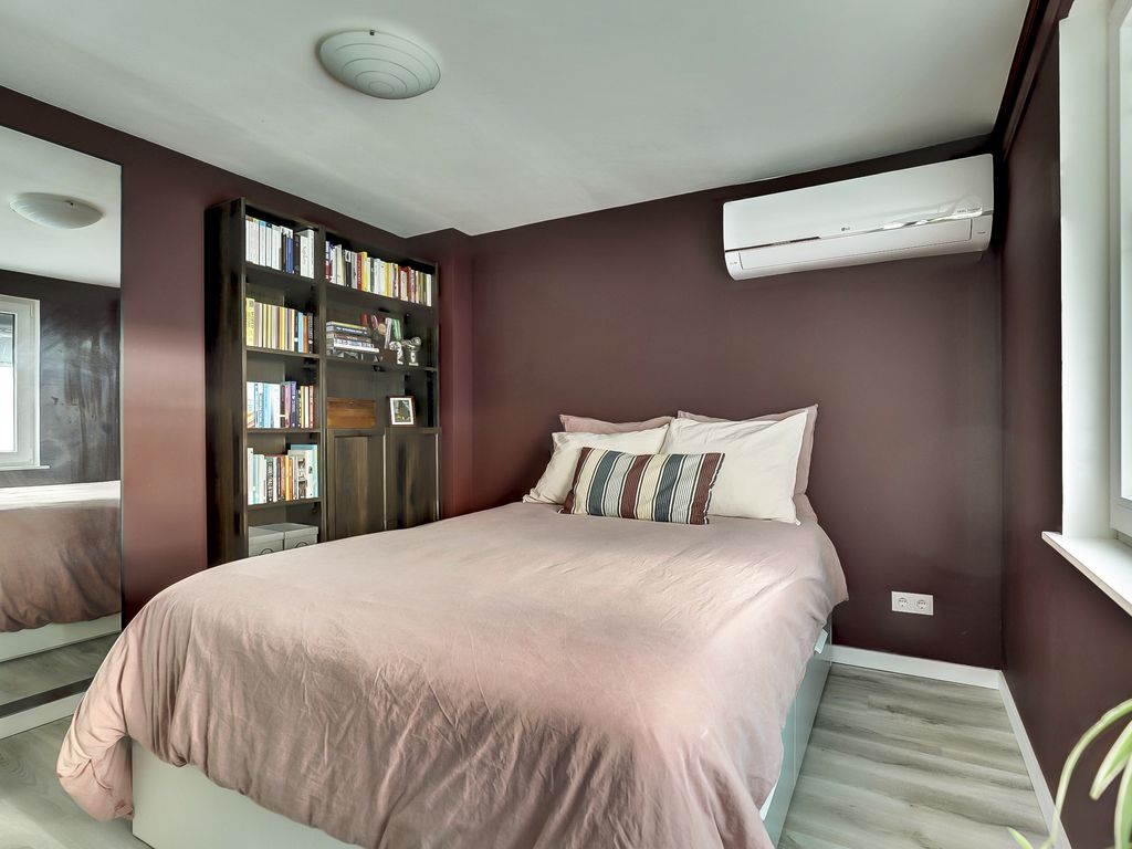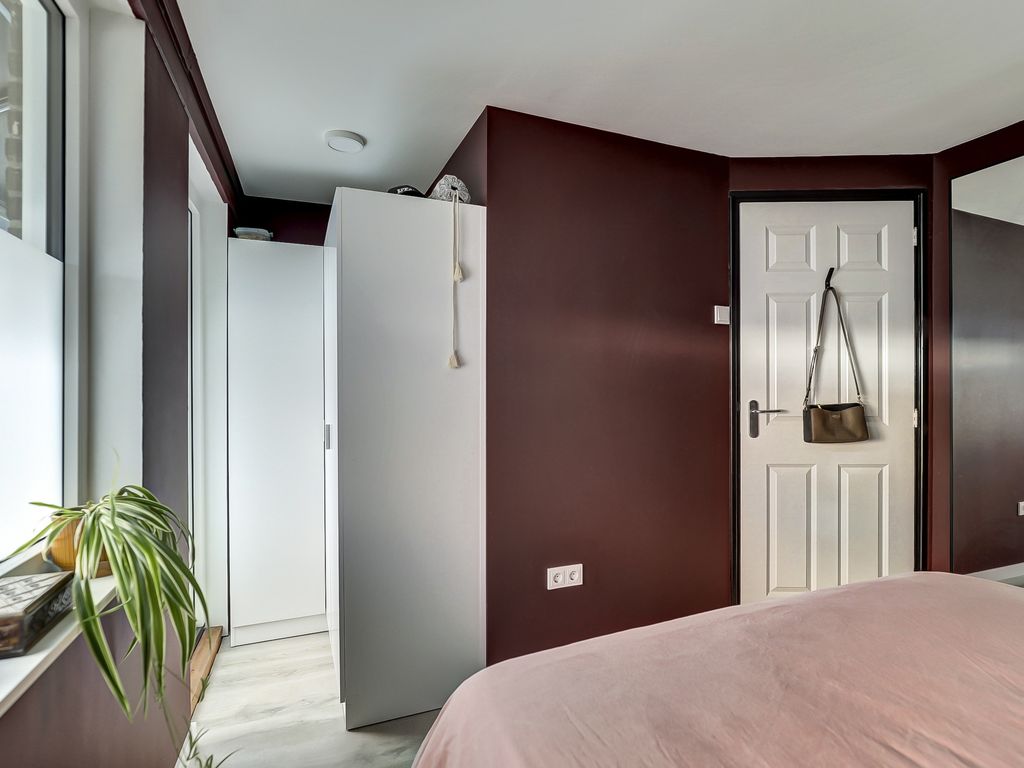 Via de overloop met een grote schuifkastenwand voor extra bergruimte bereik je de twee slaapkamers en luxe badkamer. Aan de voorzijde is een slaapkamer gelegen die uitstekend dienst kan doen als studeer- of werkkamer. De tweede slaapkamer bevindt zich aan de achterzijde van de woning en biedt toegang tot het balkon.