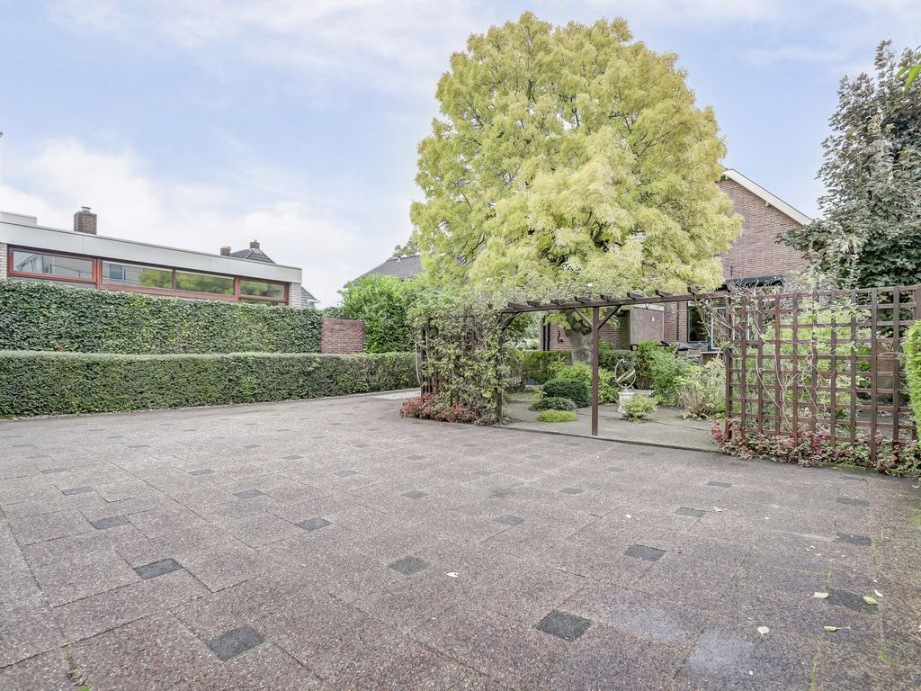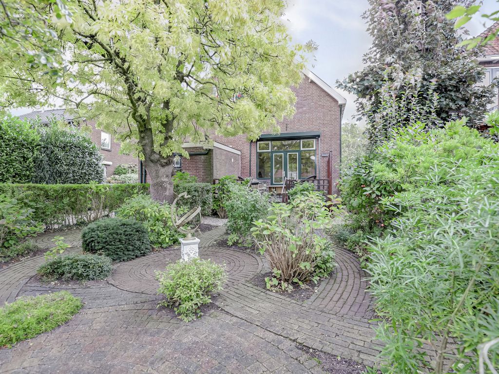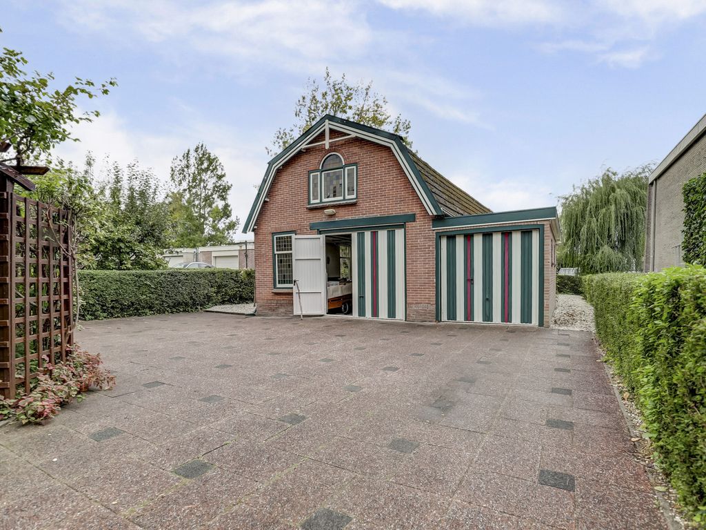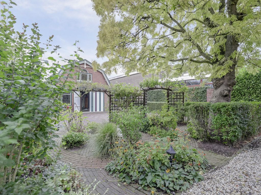 Rondom de woning ligt een prachtig aangelegde tuin – een groene oase in het hart van Reeuwijk. Bomen, heesters en slingerende paden maken van deze buitenruimte een plek die uitnodigt tot wandelen, lezen of simpelweg genieten van de rust. De brede oprit biedt ruimte aan meerdere auto’s en leidt naar twee geschakelde, vrijstaande stenen garages, beide voorzien van een op afstand bedienbare elektrische garagedeur.