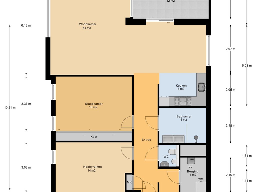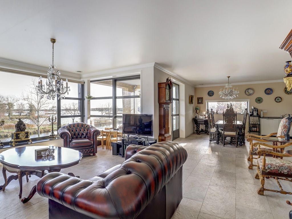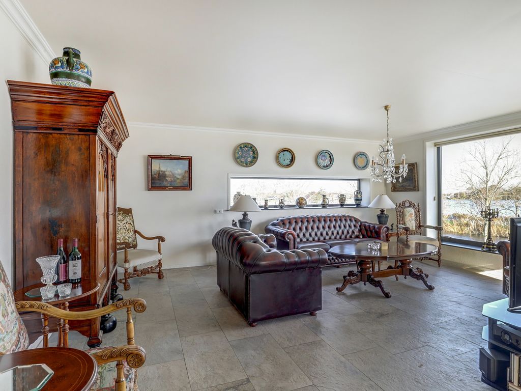 Bij binnenkomst in de entree heeft u toegang tot alle ruimtes. De royale woonkamer is licht en uitnodigend, met grote ramen die een prachtig uitzicht over het water bieden. Dankzij de grote raampartijen komt het daglicht overvloedig binnen, waardoor een lichte en aangename sfeer ontstaat. De woonkamer biedt volop mogelijkheden voor diverse opstellingen.