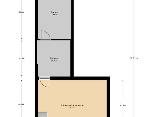 Op de begane grond vind je een royale tuinkamer van ca. 30 m² met openslaande deuren naar buiten. Deze ruimte is nu in gebruik als extra woonkamer, maar is ook ideaal als slaapkamer, thuiskantoor of atelier.