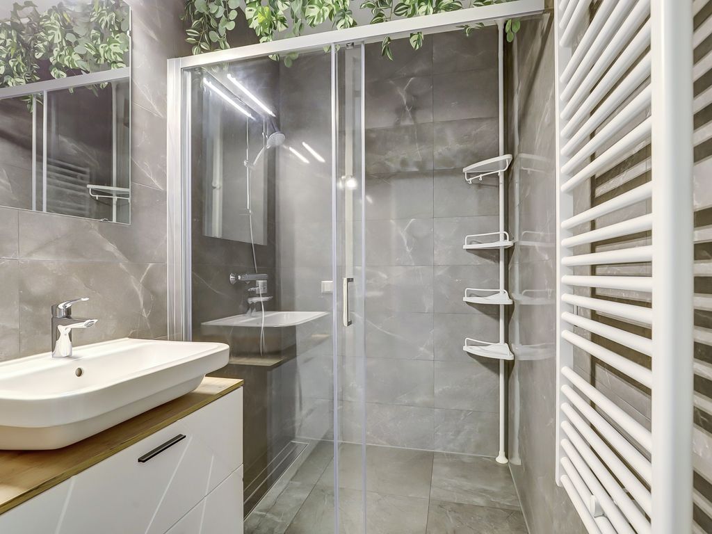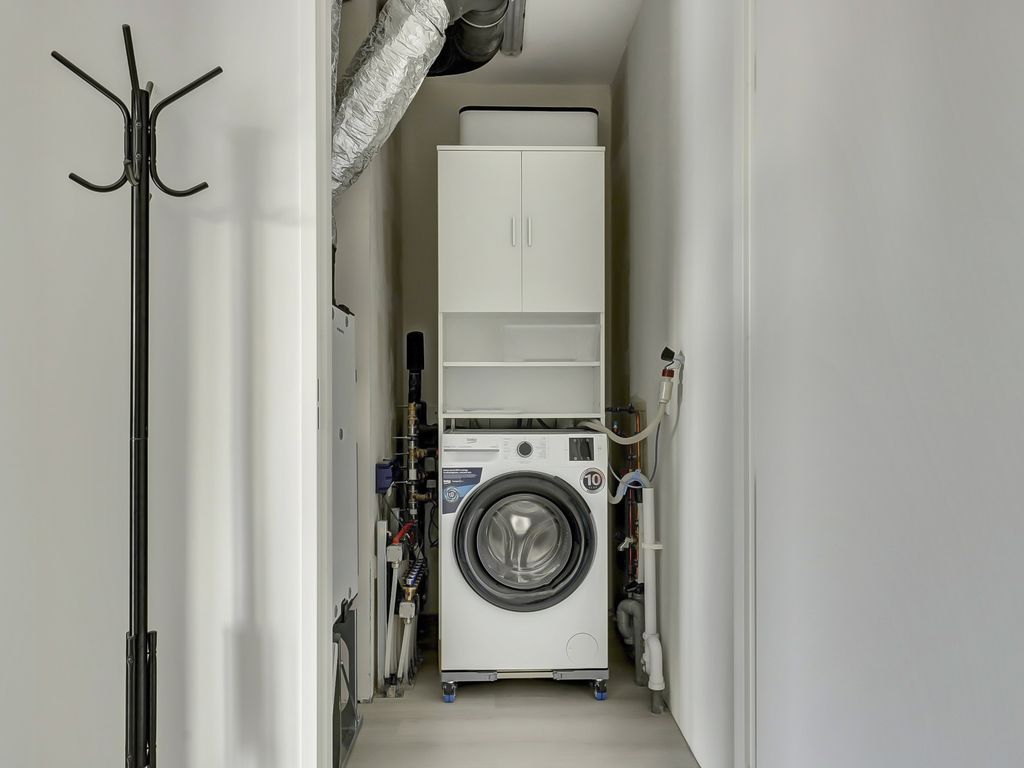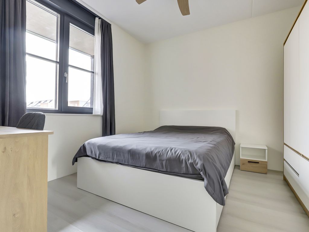 De slaapkamer is rustig gelegen en biedt meer dan voldoende ruimte voor een tweepersoonsbed en een kledingkast. De badkamer is modern afgewerkt en beschikt over een inloopdouche, een wastafelmeubel en een handdoekradiator. Daarnaast is er een separate toiletruimte aanwezig, wat bijdraagt aan het comfort. Een aparte technische ruimte me o.a. de WTW en aansluitingen voor wasmachine en droger maakt het geheel compleet.