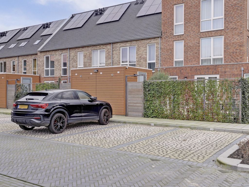 * De woning beschikt over een eigen parkeerplaats op het achtergelegen binnenterrein waar al voorbereidingen zijn getroffen voor een eventuele laadpaal;
