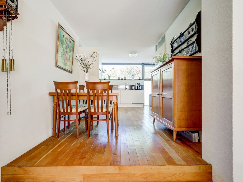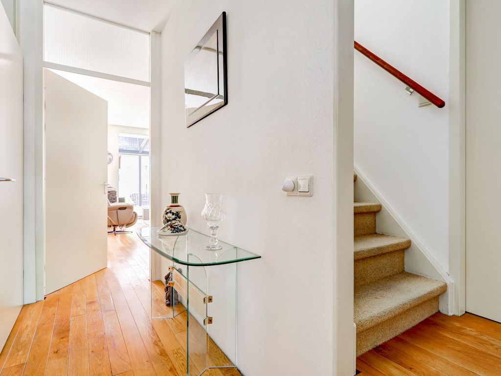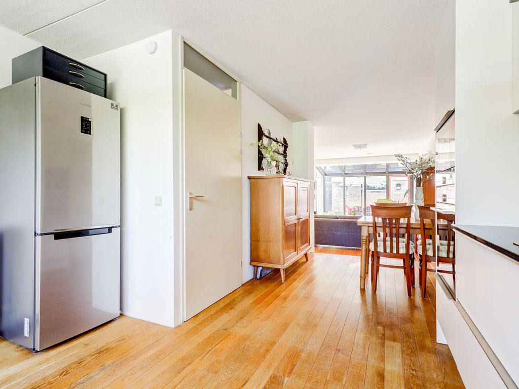 Via de ruime oprit met parkeergelegenheid voor twee auto’s bereik je de entree. De hal is voorzien van een moderne toiletruimte, meterkast en trapopgang. De sfeervolle woonkamer van circa 35 m² is afgewerkt met een prachtige Russische eiken vloer, beschikt over een praktische trapkast én wordt aan de achterzijde uitgebreid met een glazen serre met zonwering – een lichte en beschutte plek met direct tuincontact.