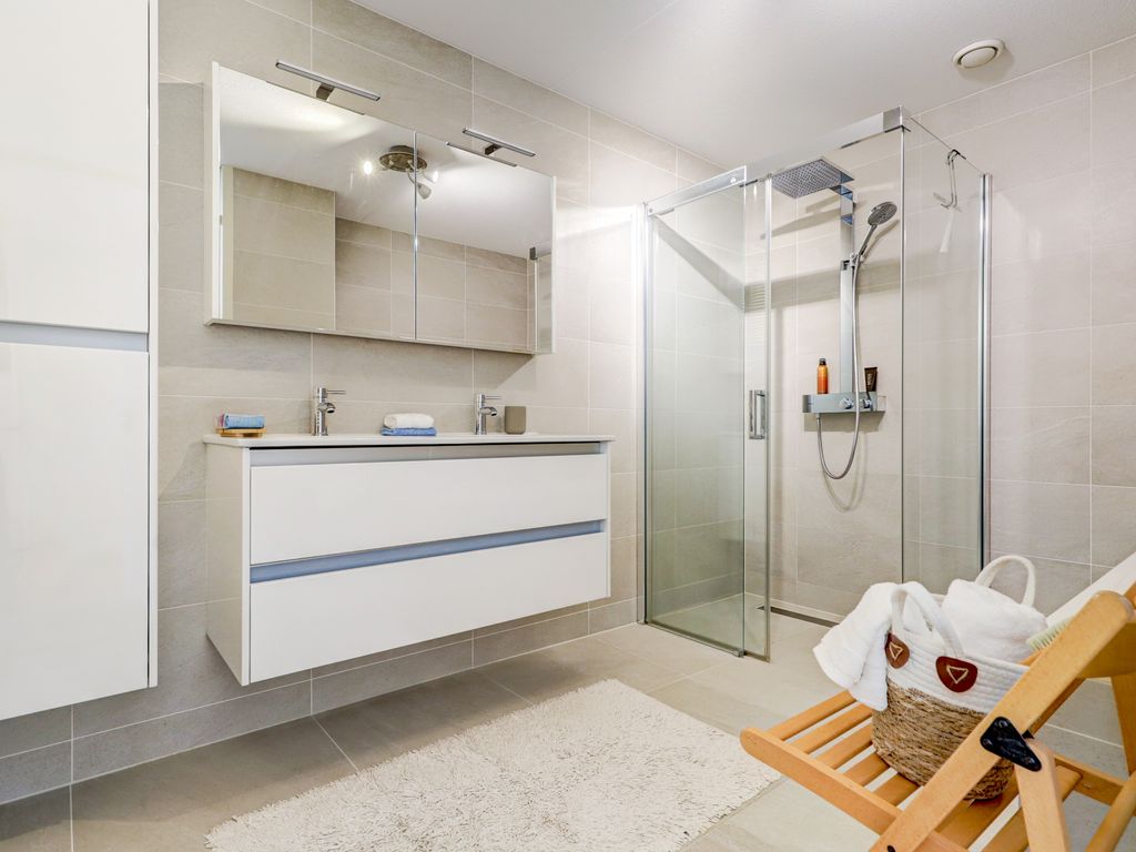 De badkamer is in 2017 vernieuwd en in 2024 voorzien van een luxe regendouche. Hier vind je verder een ligbad, dubbele wastafel en strak tegelwerk – alles uitgevoerd in een moderne, tijdloze stijl.