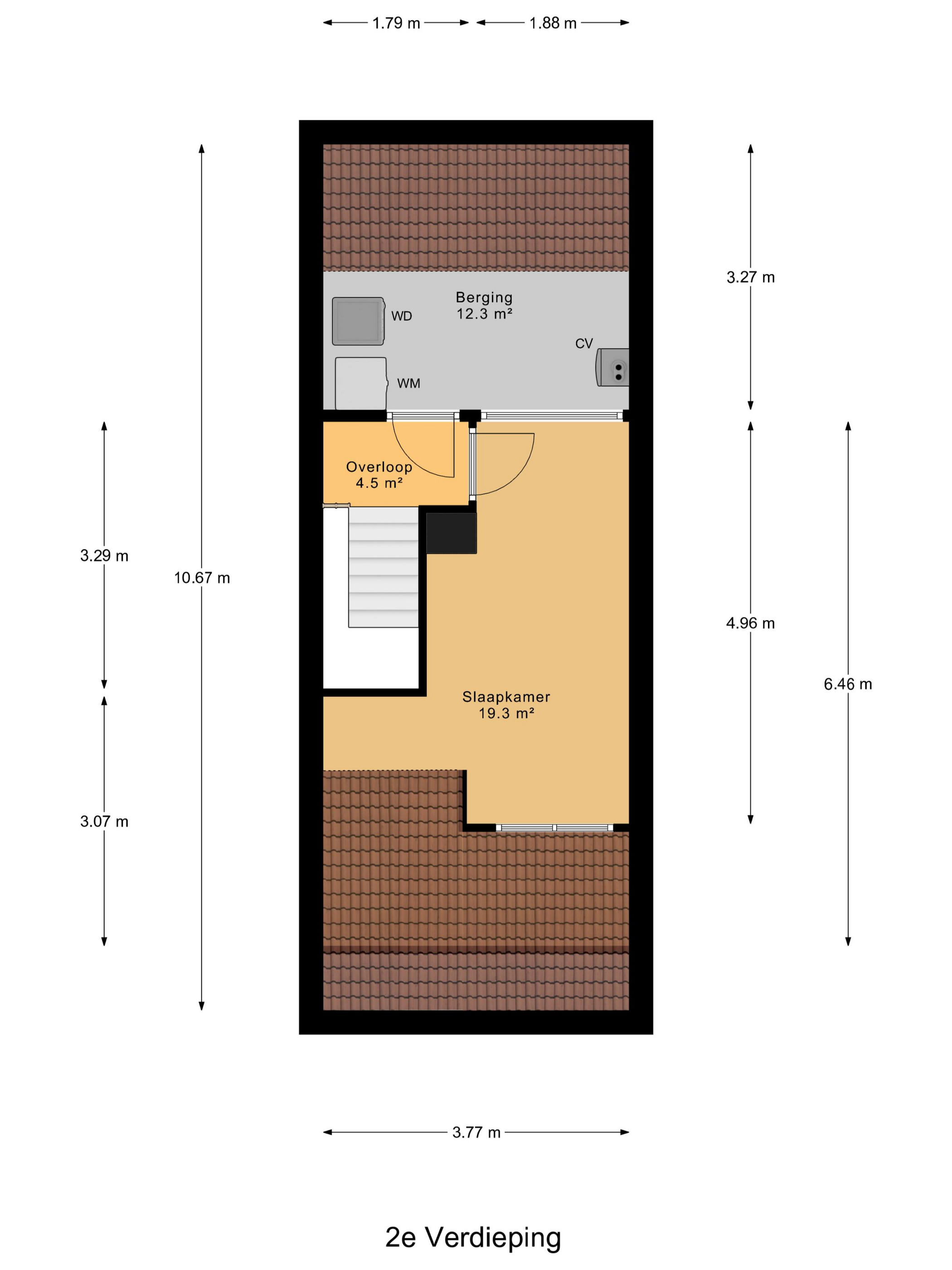 Deze verrassend ruime etage biedt een grote overloop met veel bergruimte, aansluitingen voor wasmachine en droger en de opstelling van de HR cv-ketel (2017) en WTW-installatie (2019). De vierde slaapkamer (ca. 19 m²) beschikt over een dakkapel met nieuwe kunststof kozijnen (2024) en is afgewerkt met een grenen vloer. Perfect als slaap-, werk- of hobbykamer.
