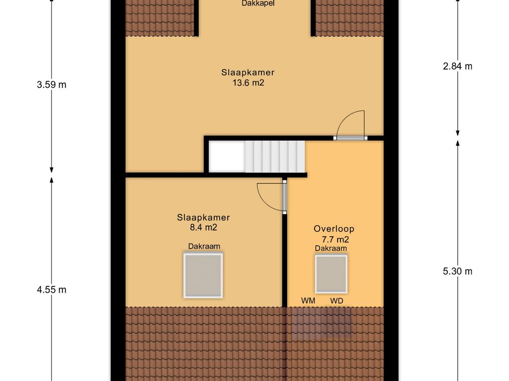 Een vaste trap leidt naar de verrassend ruime tweede verdieping met nog twee slaapkamers. Aan de achterzijde vergroot een dakkapel de kamer tot een volwaardige werk- of kinderslaapkamer. Aan de voorzijde ligt een tweede kamer. Ook erg ruim en kan gemakkelijk worden gebruikt als slaapkamer of eventueel een thuiswerk plek! Op de royale overloop is plaats voor de wasmachine- en drogeraansluiting en vindt u bergruimte achter de knieschotten.