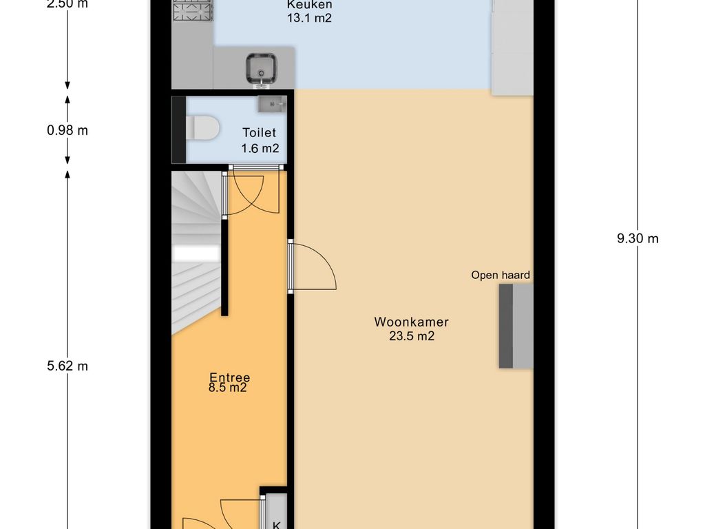 Keuken ca. 2.50x5.23 m.