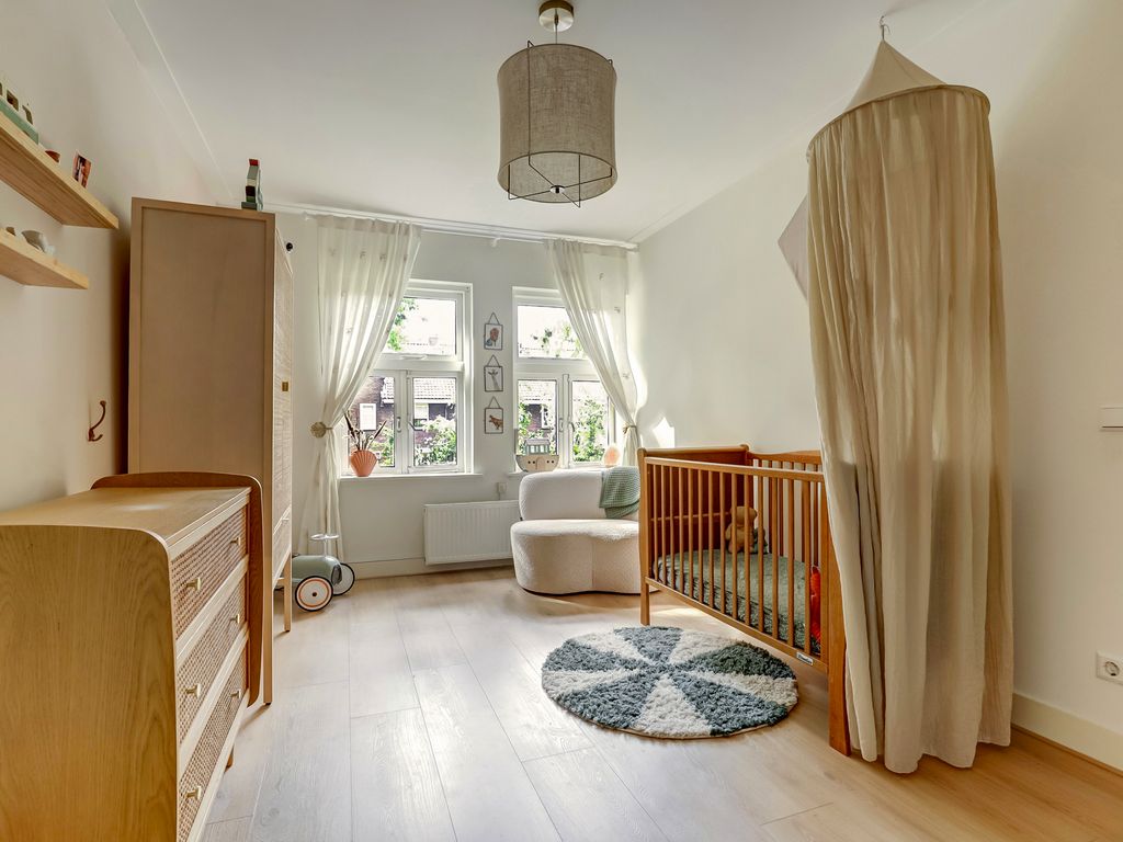 Aan de Joubertstraat 113 staat deze verrassend ruime en uitstekend afgewerkte jaren 30 tussenwoning van circa 130 m². De woning combineert karakter met comfort. Een strakke living met sfeerelementen, een woonkeuken met spoeleiland met eetbar en betonlook werkbladen, vier volwaardige slaapkamers, een luxe badkamer en een diepe, fraai aangelegde achtertuin met berging en achterom. Instapklaar wonen op loopafstand van voorzieningen en het centrum van Gouda.