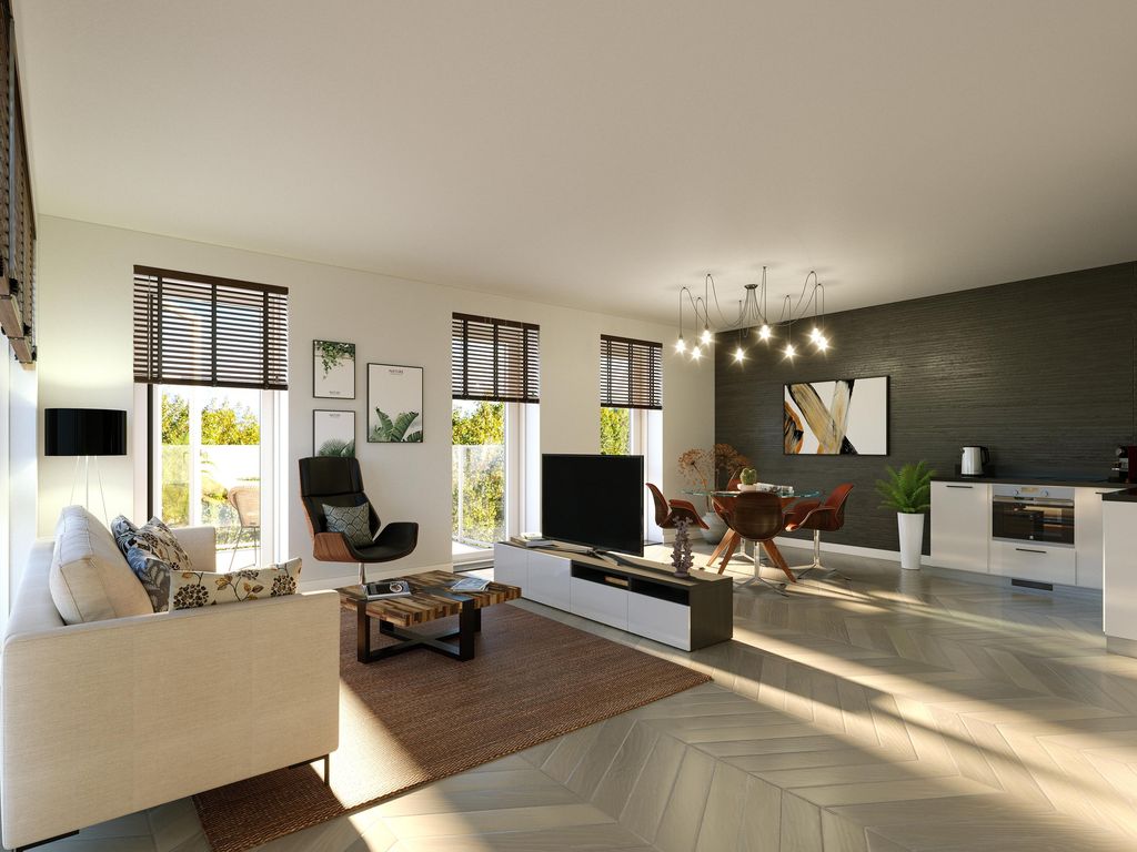 De woning is bijzonder lichtvriendelijk door de vele ramen en de hoge plafonds. De woning is momenteel nog niet voorzien van een keukeninrichting, sanitair in de badkamer en wand- en vloerafwerking. De vloerverwarming en koeling en de uitstekende isolatie maken het tot een uiterst comfortabele woning.