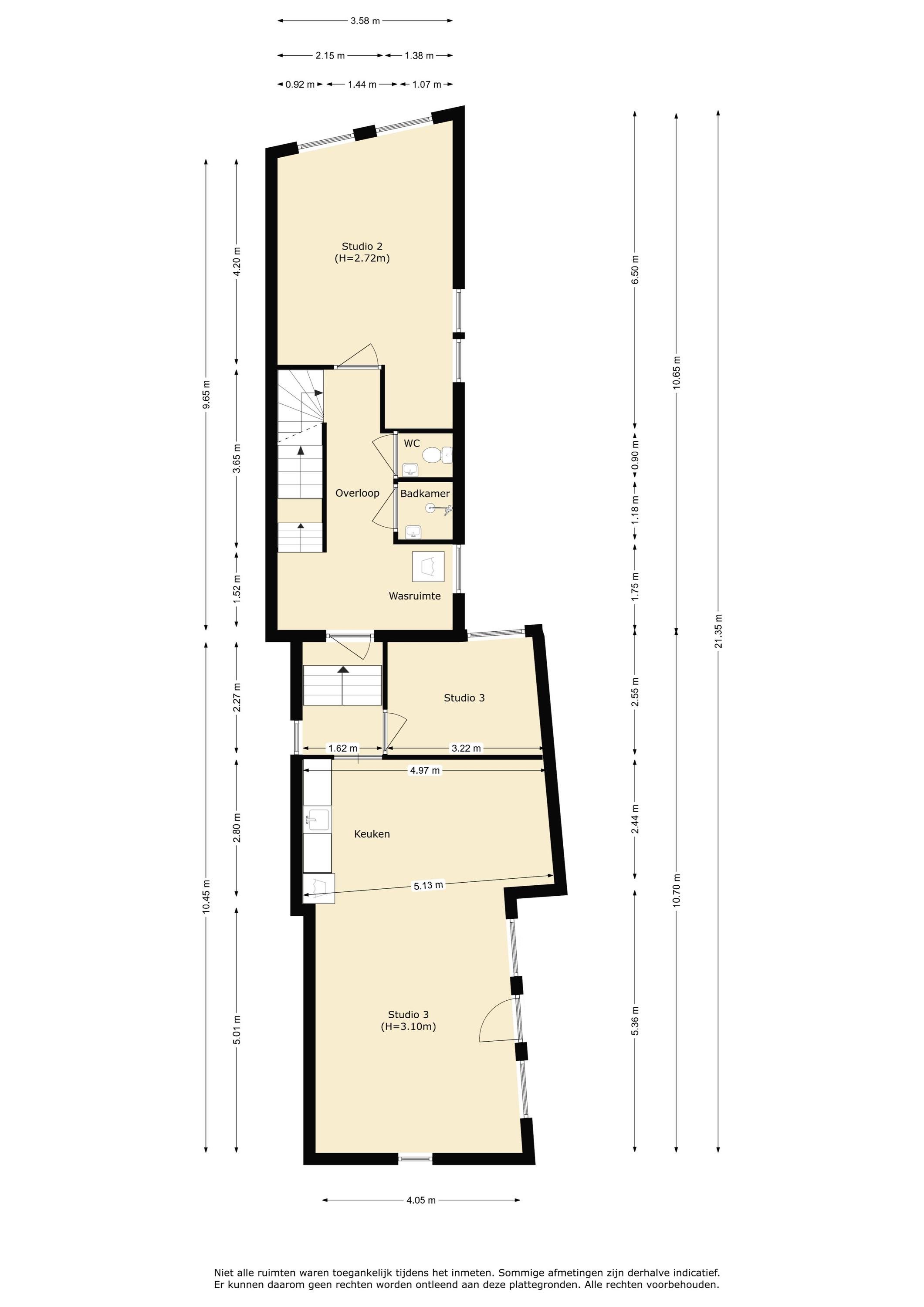 Studio 2: ca. 6.50/4.20x3.53m.