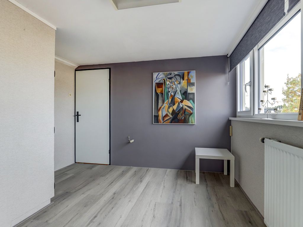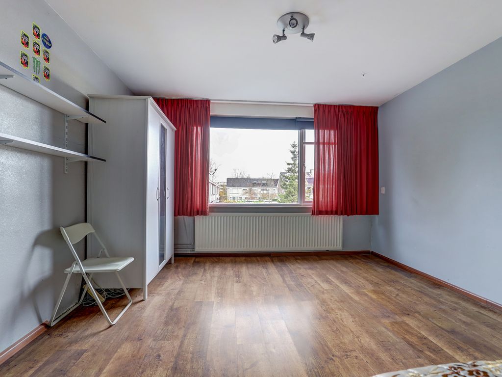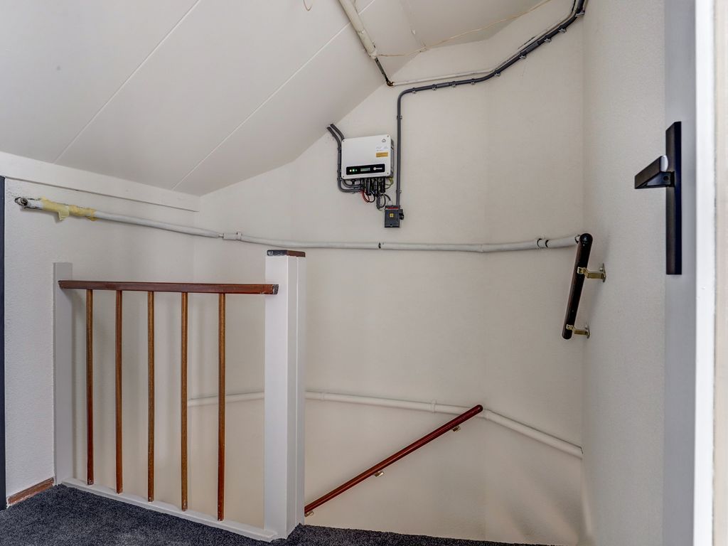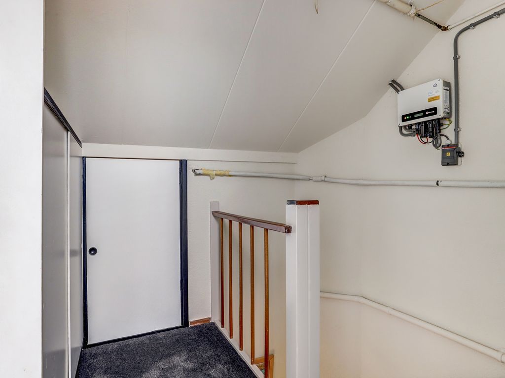 De tweede verdieping biedt extra woon- en bergruimte: vanaf de overloop, waar zich de omvormer voor de zonnepanelen bevindt, heeft u toegang tot een vierde slaapkamer (circa 10 m²) met een brede dakkapel voorzien van kunststof kozijnen. In deze kamer bevindt zich ook een vaste kast.