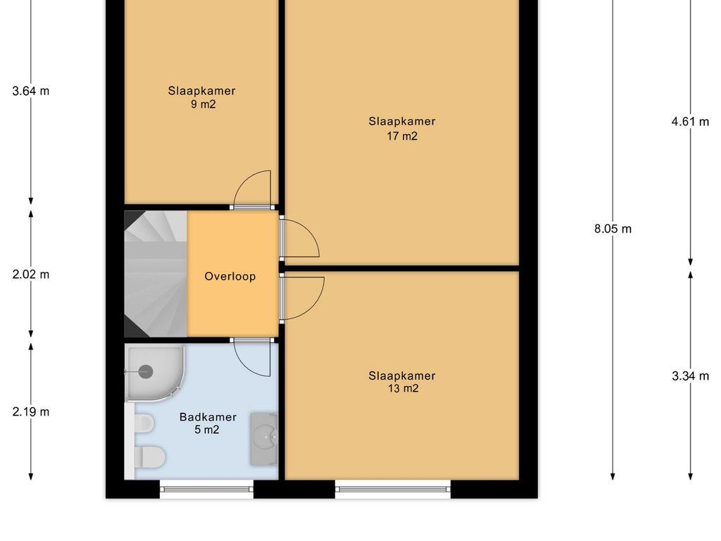 Aan de achterzijde ligt de hoofdslaapkamer (circa 17 m²) met voldoende ruimte voor een groot tweepersoonsbed en kastruimte.